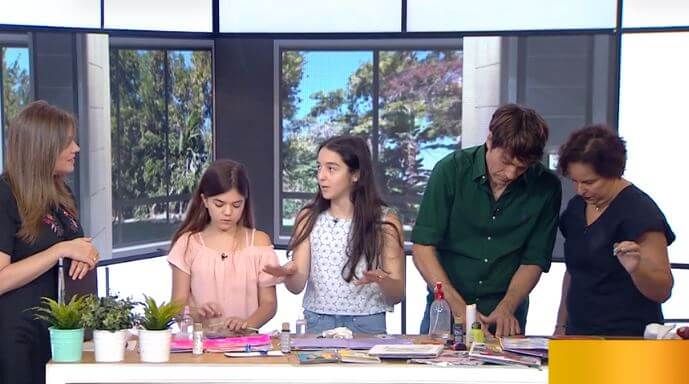 In the morning program of "Paula and Leon" there is a special corner in the summer, called "Paula and Leon's summer camp". I was a guest on the program with 2 of my young students - Michaela Ben-Zaken and Anna Afek and together we presented the visual diary.